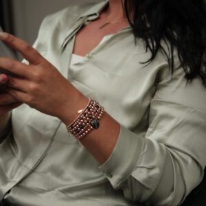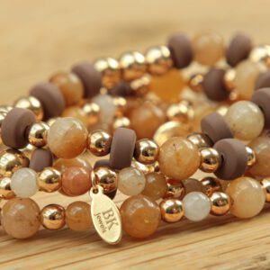 Lichtgouden armbanden set (2) met Licht groene natuursteen kralen
